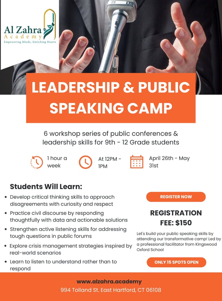 Join our workshop to master leadership and public speaking skills for a confident future.